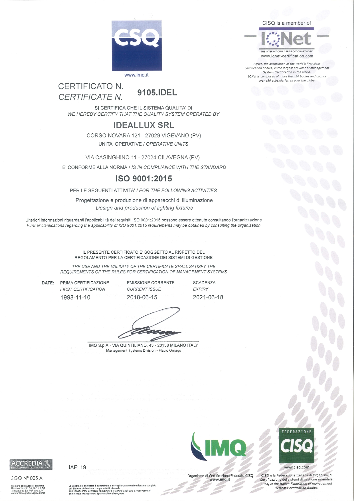 With a view to customer satisfaction and service optimization, Ideallux has put in place quality control processes with the aim of limiting defectiveness, which has been less than 1% (ISO statistical data of the last three years).