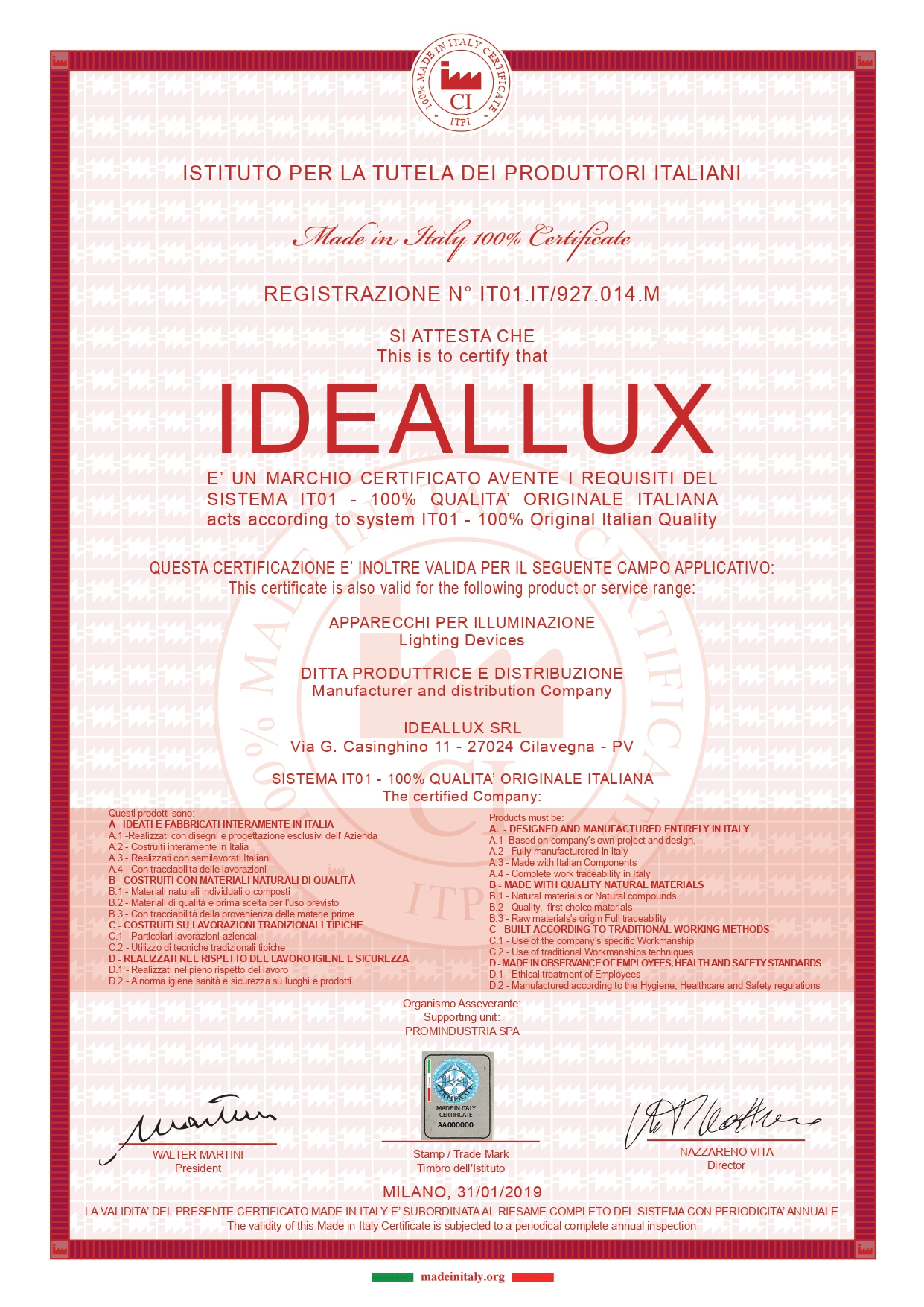 The group's mission is the design and production of lighting systems, made at the Cilavegna plant in the Province of Pavia and certified 100% Made in Italy.