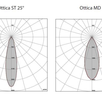 Metallized aluminium polycarbonate louver wide beam (code LA), medium beam (code MD) narrow beam (code ST).