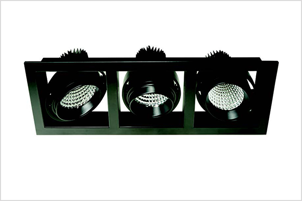 Metallized polycarbonate louver, wide-beam (code LA), medium beam (code MD), narrow beam (code ST), spot beam (code SP).