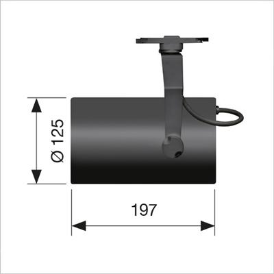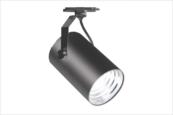 Adjustable track-mounted LED projector, exchangeable optics.