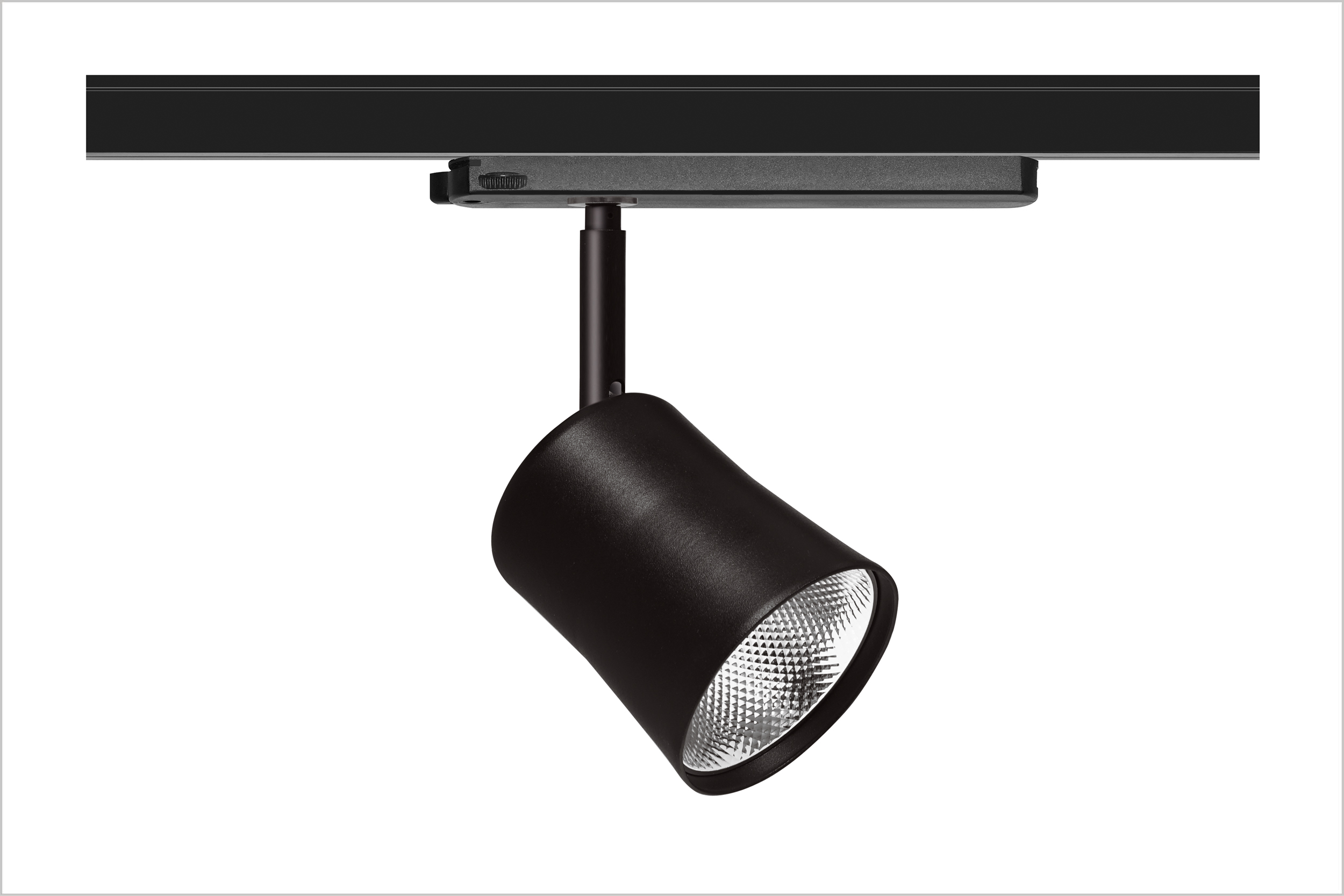 Adjustable track-mounted LED projector, exchangeable optics. Beam SP/ST/MD/LA