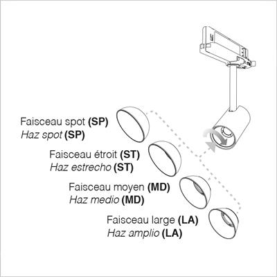 Metallized polycarbonate louver wide beam (code LA) medium beam (code MD) narrow beam (code ST) spot beam (code SP).