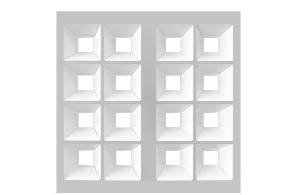Sistema di fissaggio ad incasso in appoggio in controsoffitti 600x1200 mm con struttura portante a vista senza l’utilizzo di accessori. Sorgente luminosa LED.