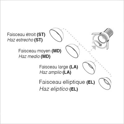 Ottica in policarbonato metallizzato fascio largo (cod. LA) fascio medio (cod. MD) fascio stretto (cod. ST) fascio ellittico (cod. EL).