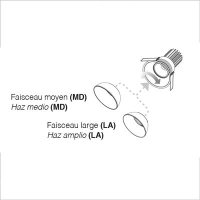 Ottica in policarbonato metallizzato fascio largo (cod. LA) fascio medio (cod. MD).
