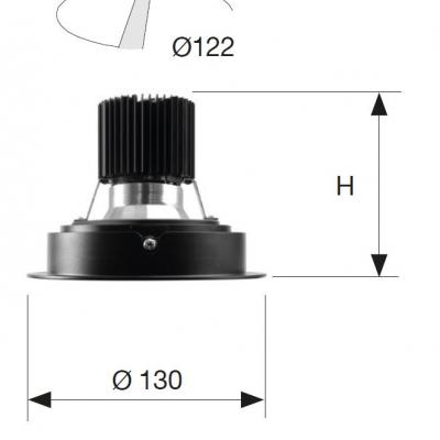 Corpo in lamiera tornita, gruppo orientabile pressofuso in alluminio verniciato con polveri epossidiche previa fosfatazione.