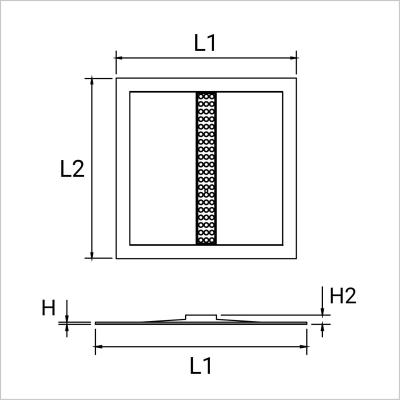 controsoffitti in cartongesso tramite l’utilizzo del telaio TLC o a sospensione/plafone con accessorio KTPIT. Sorgente luminosa LED. Emissione diretta.